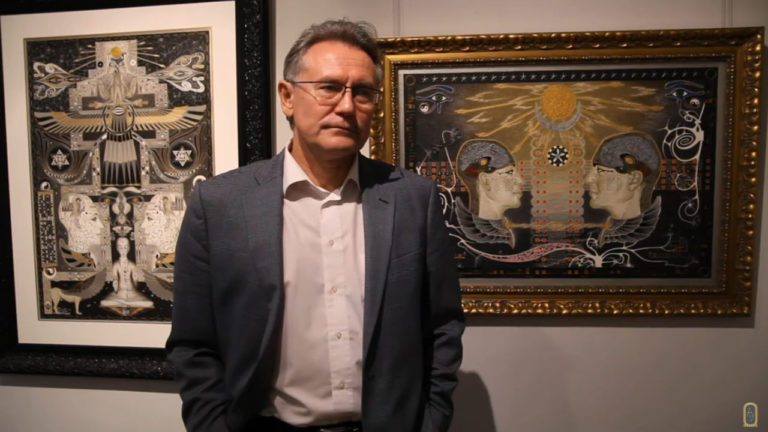 Yuri Vakulenko (Юрий Вакуленко), der Direktor des Kiewer Nationalmuseums für russische Kunst, steht vor zwei Meisterwerken von Natalja Nouri und spricht über das Projekt, das Pashmin Art dort in Zusammenarbeit …